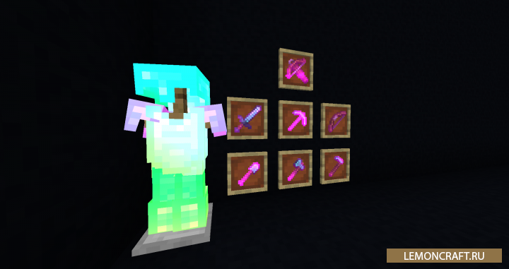 Мод на изменение цвета зачарований Glint Color дает возможность менять цвет у зачарований для различных предметов: мечей, брони или кирок. Используя определенные значения цвета вы можете подобрать нужный вам оттенок. Так же есть возможность включить в настройках плавную смену цвета, или смену цвета по таймеру.